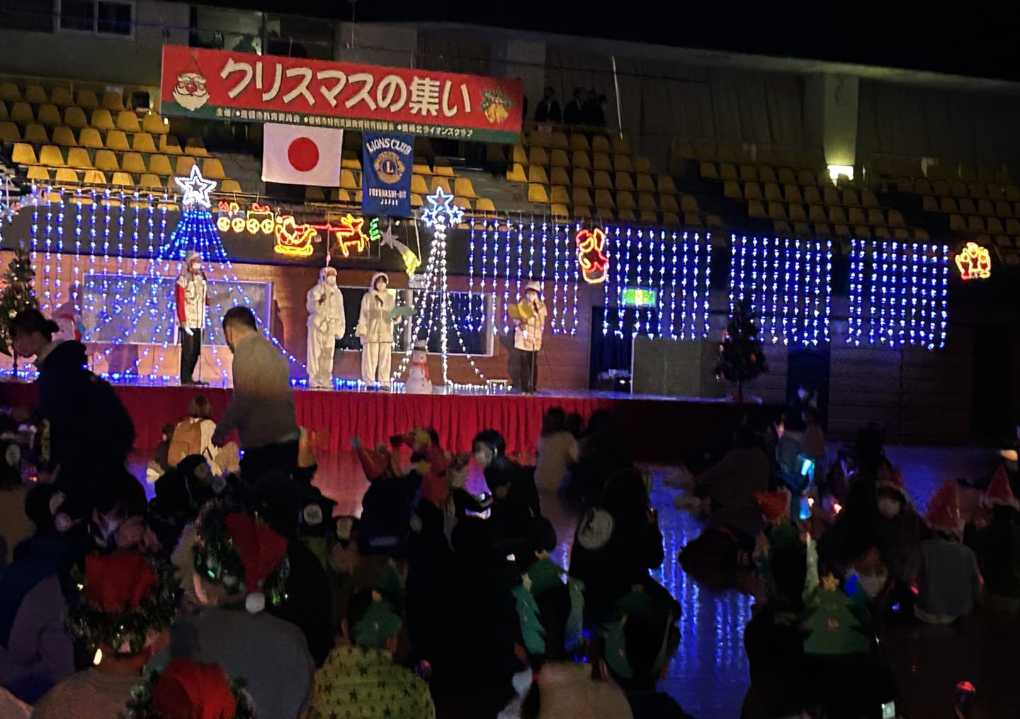 豊橋北ライオンズクラブ、豊橋市教育委員会、市特別支援教育研究協議会主催の『クリスマスの集い』市内計63の小学校、保育園、福祉施設の子どもたちと、職員や保護者、LC関係者ら計約800人が参加する大クリスマス会。子どもたちに夢や感動を贈ろうと、1978年から続ける。各校の校長や園長らがふんするサンタクロースが会場に次々登場。子どもたちは大喜びでサンタとダンスを楽しんだり、天井から舞い落ちる紙の雪を一緒に眺めたりするなど、楽しいクリスマスの思い出を作る。